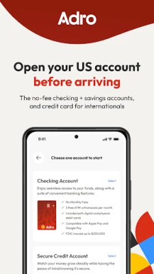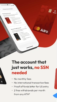 At Adro, we believe in making financial services accessible, even without an SSN. If you’re coming to the US to work or study, we’ve got you covered even before you move, with best-in-class checking, savings, and credit accounts that you can open and pre-fund from home. Skip the line at the bank and check this important step off your to-do list ahead of time.