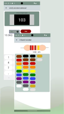 The app contains the electronic components reference section, electronics circuit reference section, and electronics circuit calculation section.