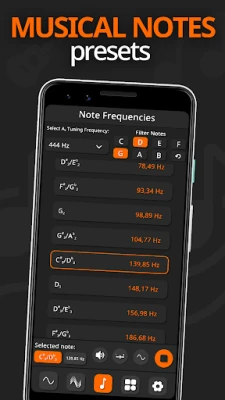 • Phone speakers are not high-quality audio sources and may vary in quality. Sometimes a "parasite" noise can be generated by those speakers in very low or high frequencies which don't define the frequency.