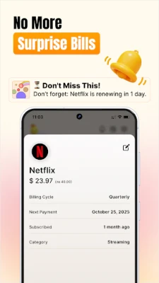• Renewal reminders & alerts before charges hit