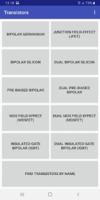 The directory contains all the main categories of transistors: bipolar silicon and germanium transistors, pre-biased bipolar transistors, junction and metal-oxide-semiconductor field effect transistors (MOSFET), insulated-gate bipolar transistors (IGBT). There are also transistor assemblies: dual bipolar transistor, dual pre-biased bipolar transistors, dual-channel mos-field effect transistors (MOSFET) and dual-channel insulated-gate bipolar transistors (IGBT).