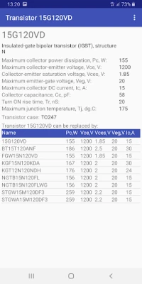 The directory provides two ways to search for transistors in the database - by parameters and by name. Search by name is convenient if you have a transistor and need to find out its characteristics. To do this, you need to type characters from the name of the transistor, while the table below will immediately display those transistors, in the name of which there is this sequence of characters. To search for parameters, first select the appropriate category of transistors. Then you specify the ranges of values of the necessary parameters for the selected type of transistors. Transistors that meet the specified parameters will also be displayed in the table below. By clicking on one of the lines, you can open a page with a detailed description of the selected transistor. In the description, in addition to the parameters for selection, all the parameters of the transistor from the reference database will be presented. In addition, the following suggested replacement for this transistor and other transistors, the main parameters of which are not worse or slightly better.